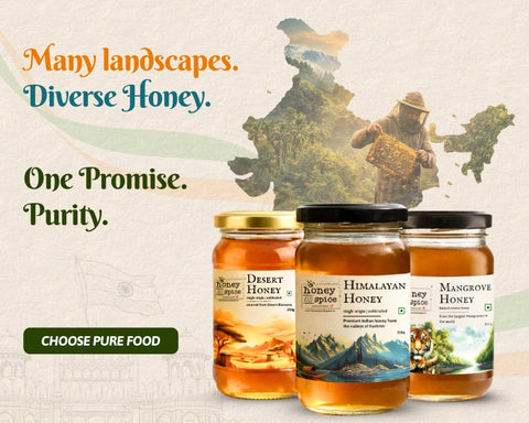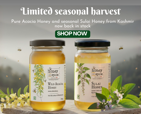 At Honey and Spice, our honey is sustainably harvested from wild beehives by tribal partners trained by WWF and other organizations. With cruelty-free methods, we ensure no harm to bees or their hives. We keep our honey 100% pure, just as nature intended—nothing added, nothing removed.